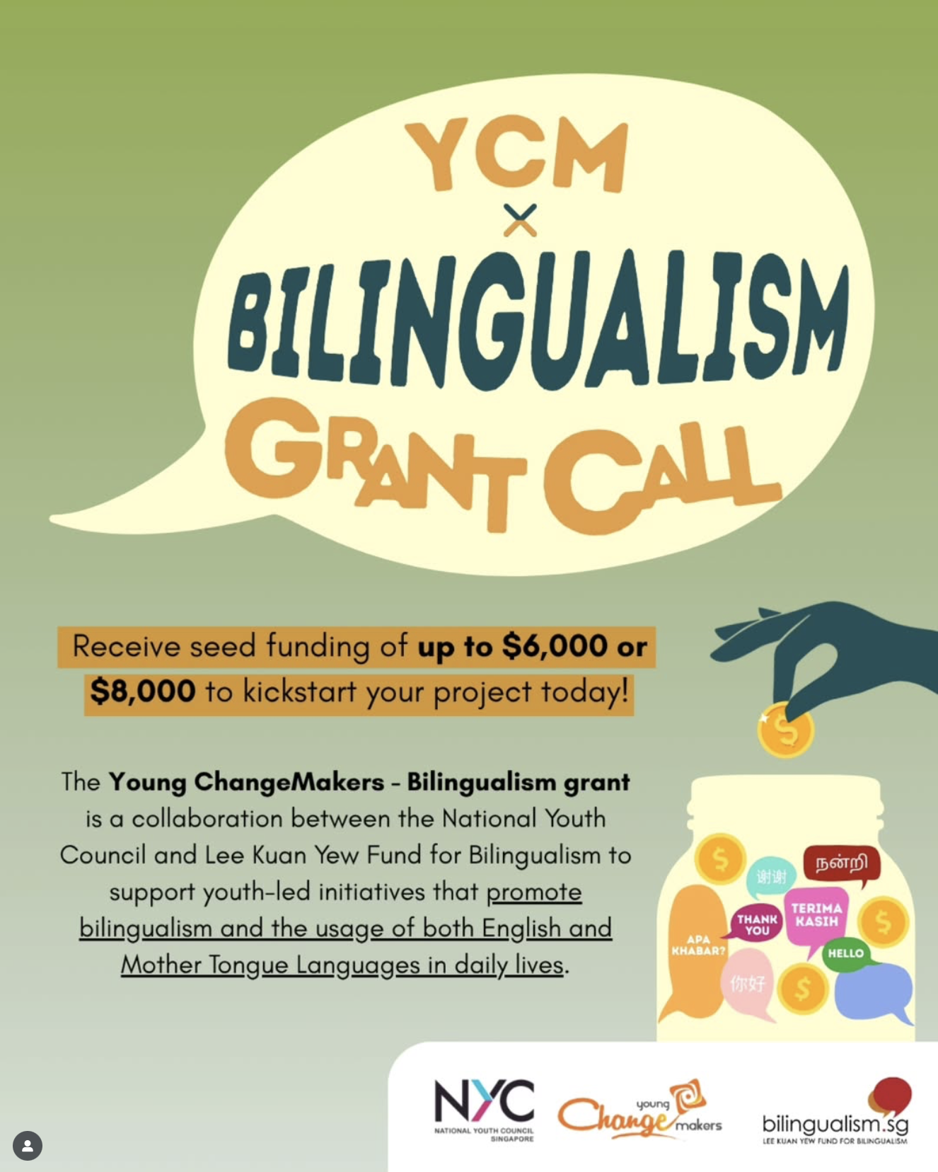 and eligible applications can apply to the YCM – Bilingualism via the YCM